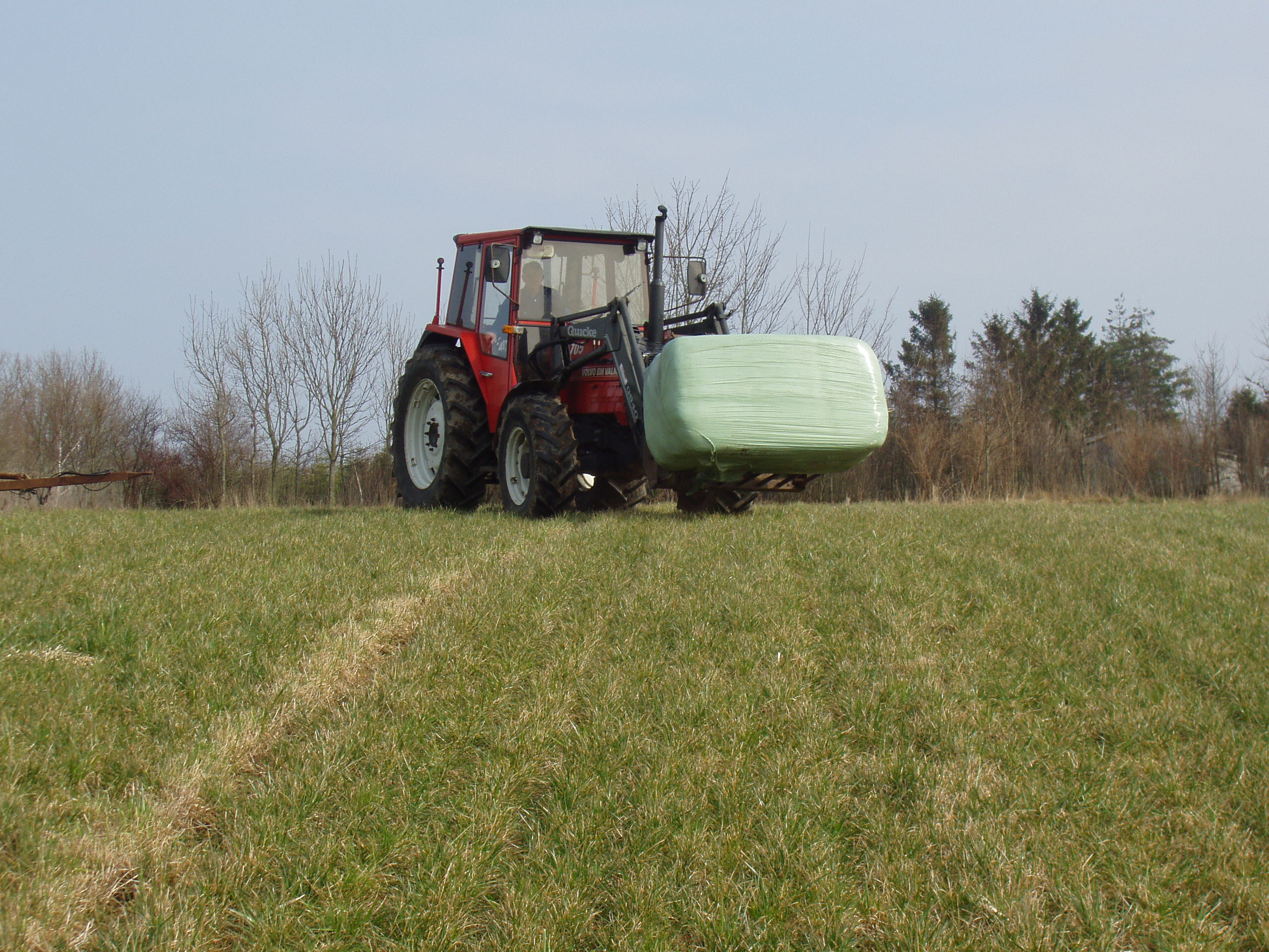 Her på egen mark blev der kørt mere foder til. Gødning blev der spredt om morgenen med en lejet gødningsspreder, og nu blev det atter de sultne køers tur.