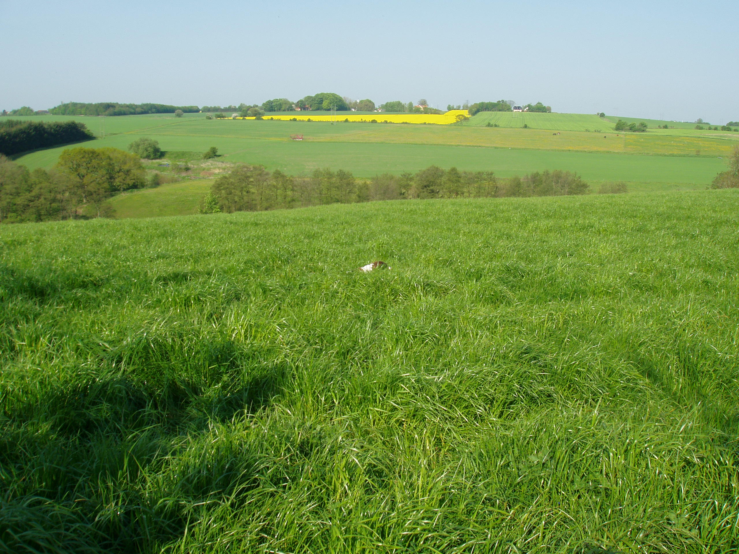 Græsset er vokset så meget, at det mange steder når hunden over hovedet.