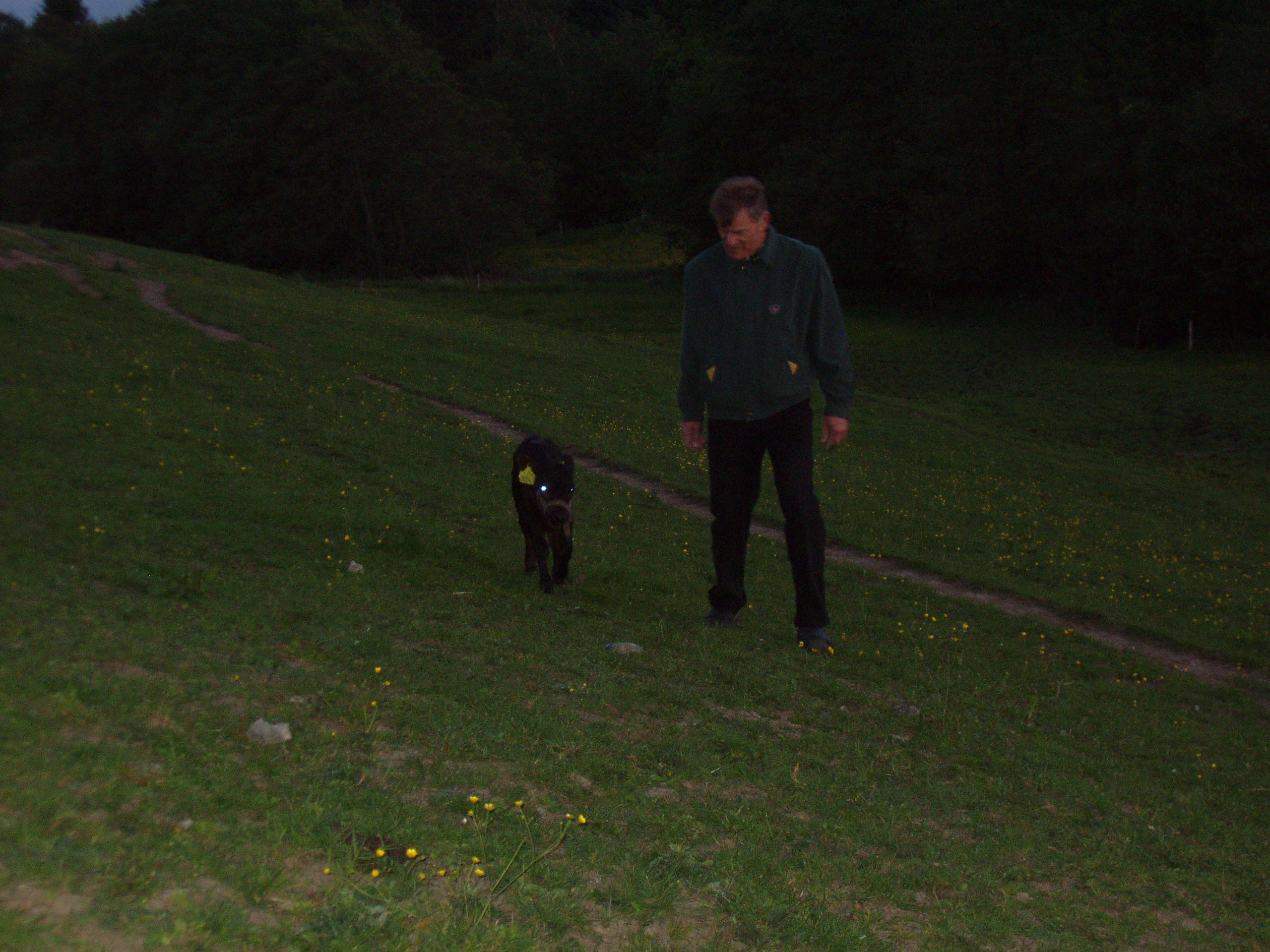 Bondemanden henter kalven til aftenfodring.