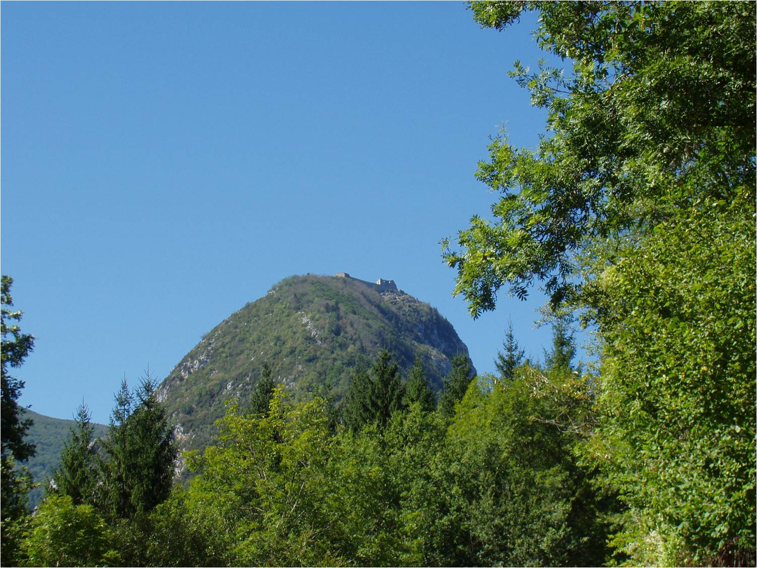 Vi besteg bjerget – en god halv times klatren fra der, hvor der absolut ikke kunne køres længere – og nåede op til borgen Montsegur, hvor katharerne modstod en 10 måneder lang belejring, før de måtte overgive sig. De har været fantastisk seje – jeg var da slemt forpustet bare at at klatre ad stier og trapper i en tåleligt tempo – de sprang som bjerggeder ad skjulte stier uden reb og rækværk. Hele tiden med livet som indsats.