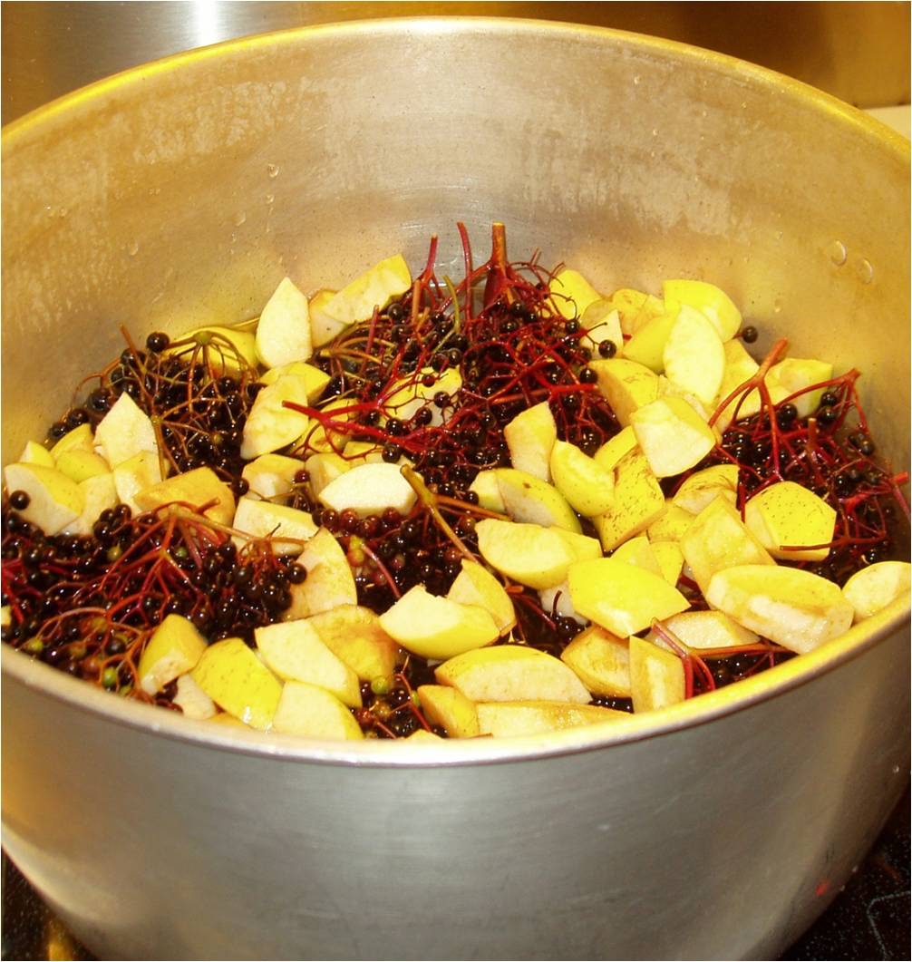 Bærrene skal koge, til de springer, men mindst et kvarter. Hyldebær er nemlig giftige, når de ikke er kogt.