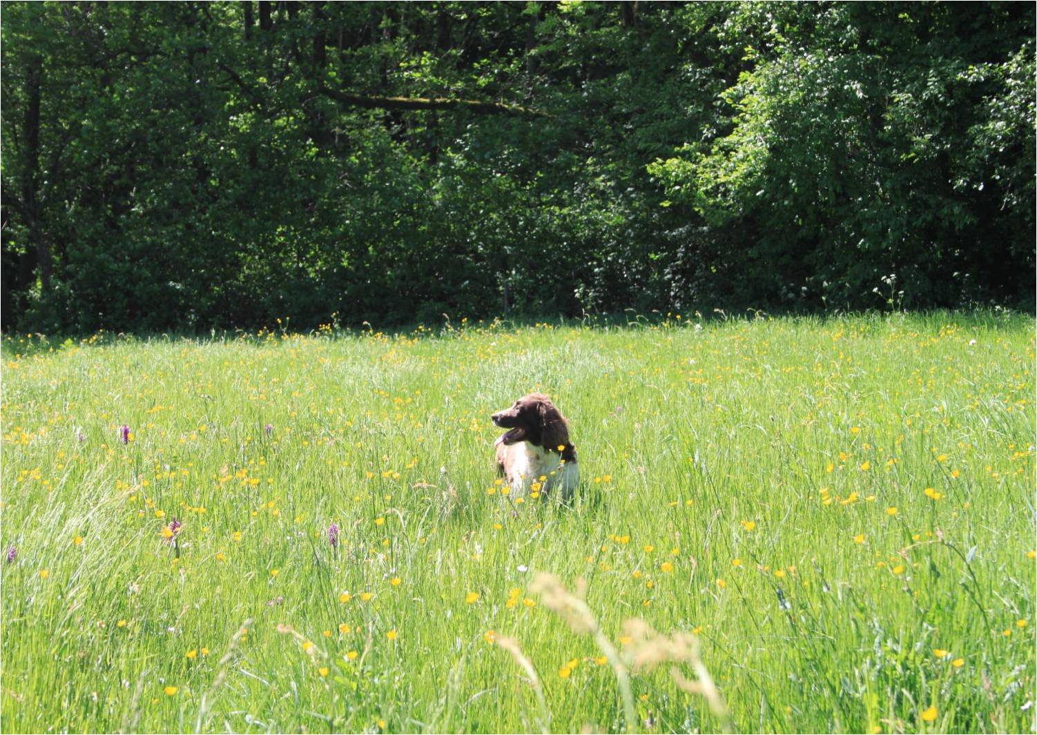 Græsset er et blødt tæppe, der køler de varme elverpigefødder, og det er smykket med de skønneste juveler, en elverpige ved: lilla gøgeurt og gule ranunkler.