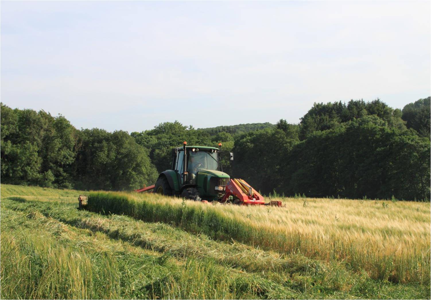 Men det er ingenting i forhold til de maskiner, der skal til, når der skal laves mad til køerne. Der kan man snakke om storkøkken. For det første er ingredienserne til årets vintermad flere hektar med græs og vårbyg.