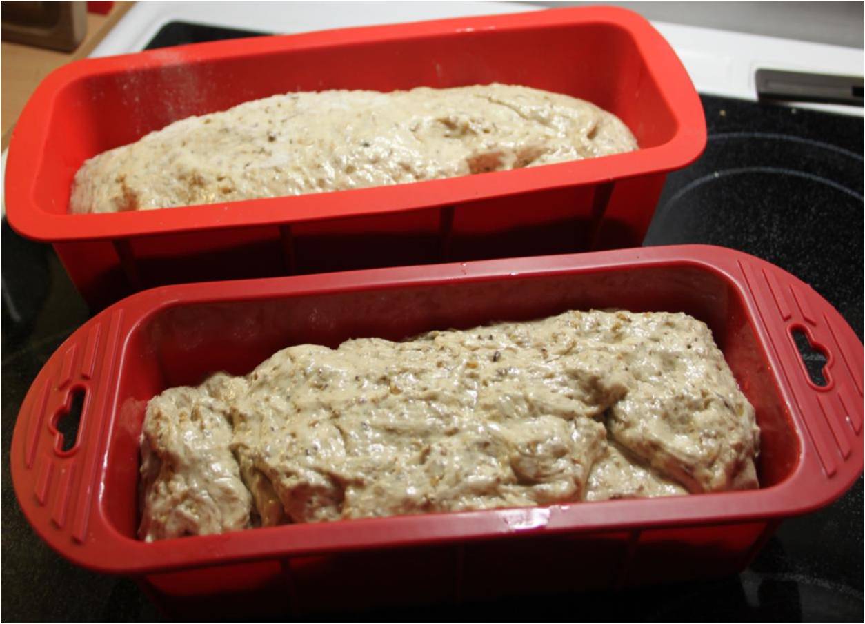 Fordel dejen i to brødforme – jeg brugte de herlige silikoneforme, jeg fik i julegave.