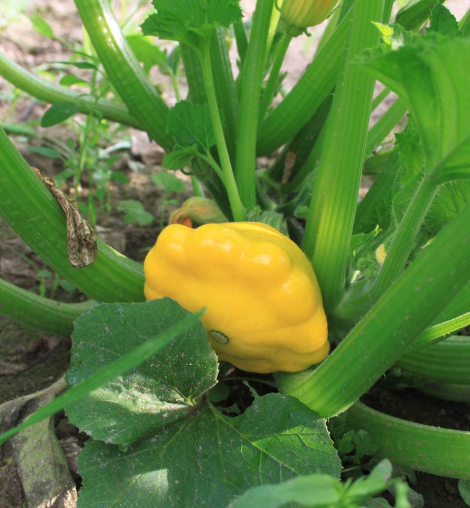 De står i kanten af markbedet, der i øvrigt flyder over med squash – og nogle af dem er også gule.