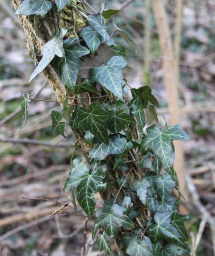 Vores efeu stammer ovre fra vores skov, hvor den kravler op ad træernes stammer.