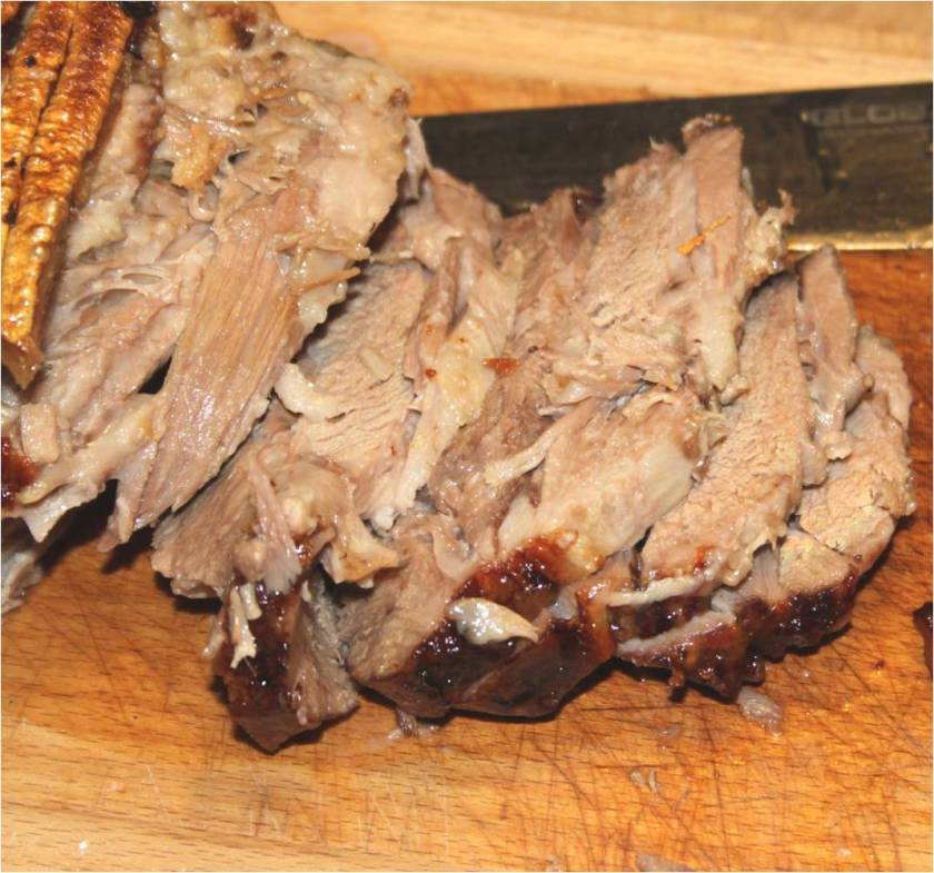 Når du kommer ind igen, er det ved at være tid til at lave tilbehør. Mål kernetemperaturen. Den skal være på godt 75 grader. Hellere 80 end 70, for kødet skal være helt mørt.