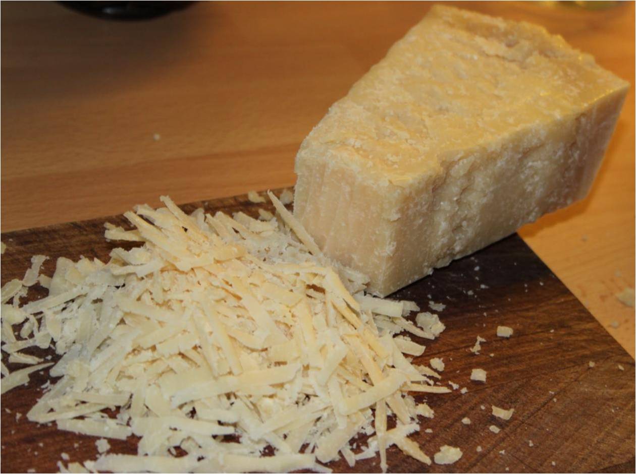 Spis med revet grana ost.