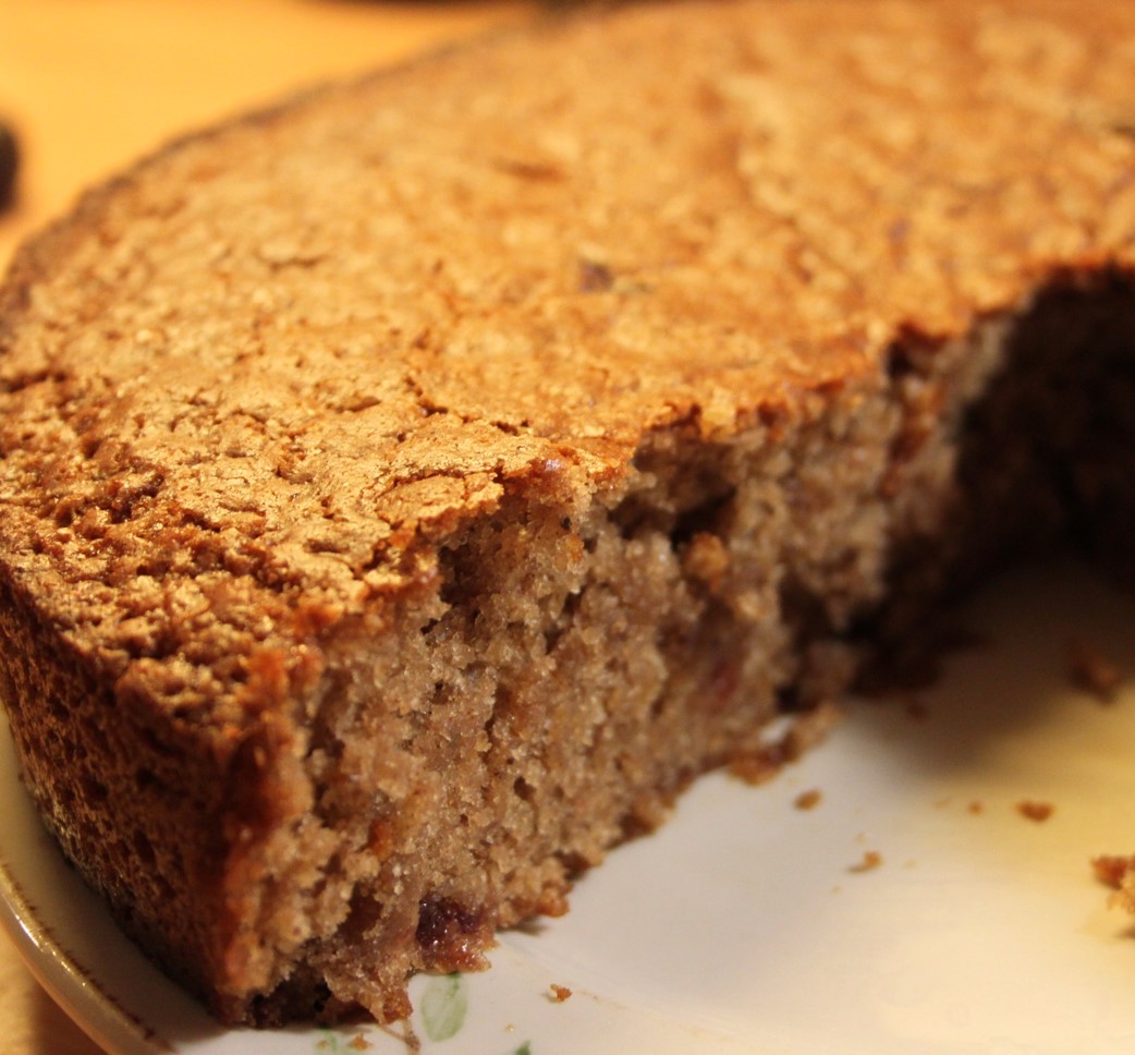 Bland de tørre ingredienser og tilføj så de våde. Rør sammen og hæld over i en bageform. Bag kagen ved 200 grader i en tre kvarters tid – stik i den med et grillspyd (bedre end at bruge en tandstikker – grillspyddet giver større afstand mellem den varme kage og de bare fingerspidser), og hvis der ikke længere hænger dej ved, er kagen færdig.
