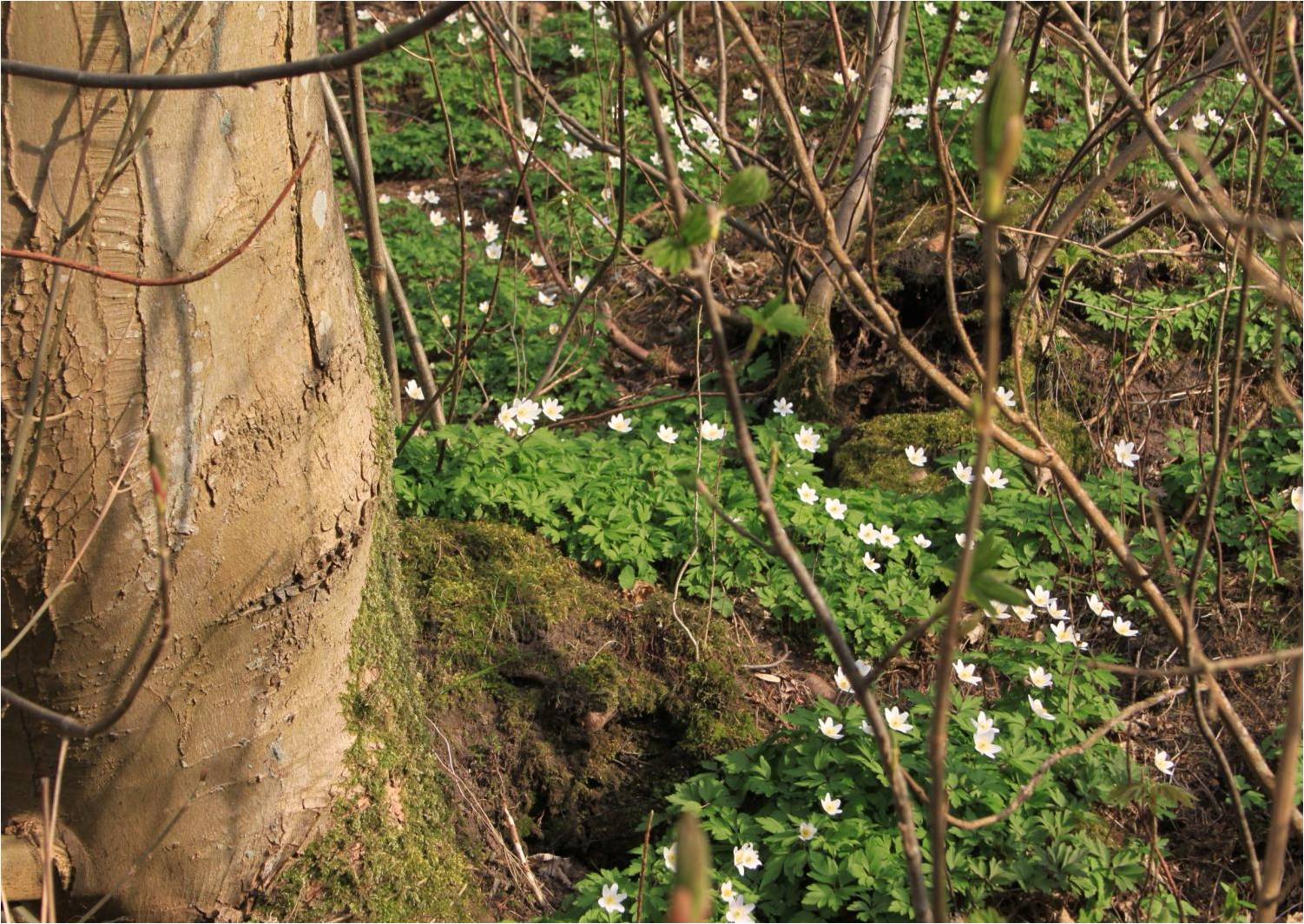Buske grønnes, træernes knopper bliver tykkere, fuglene synger, og anemoner dækker skråningerne ovre i skoven og langs vejen.