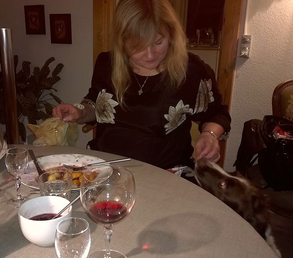 Og der er også nok til godbidder til hjemmets andre beboere – helt ligesom der var det juleaften, hvor billedet her er fra. Vejret er også næsten det samme….