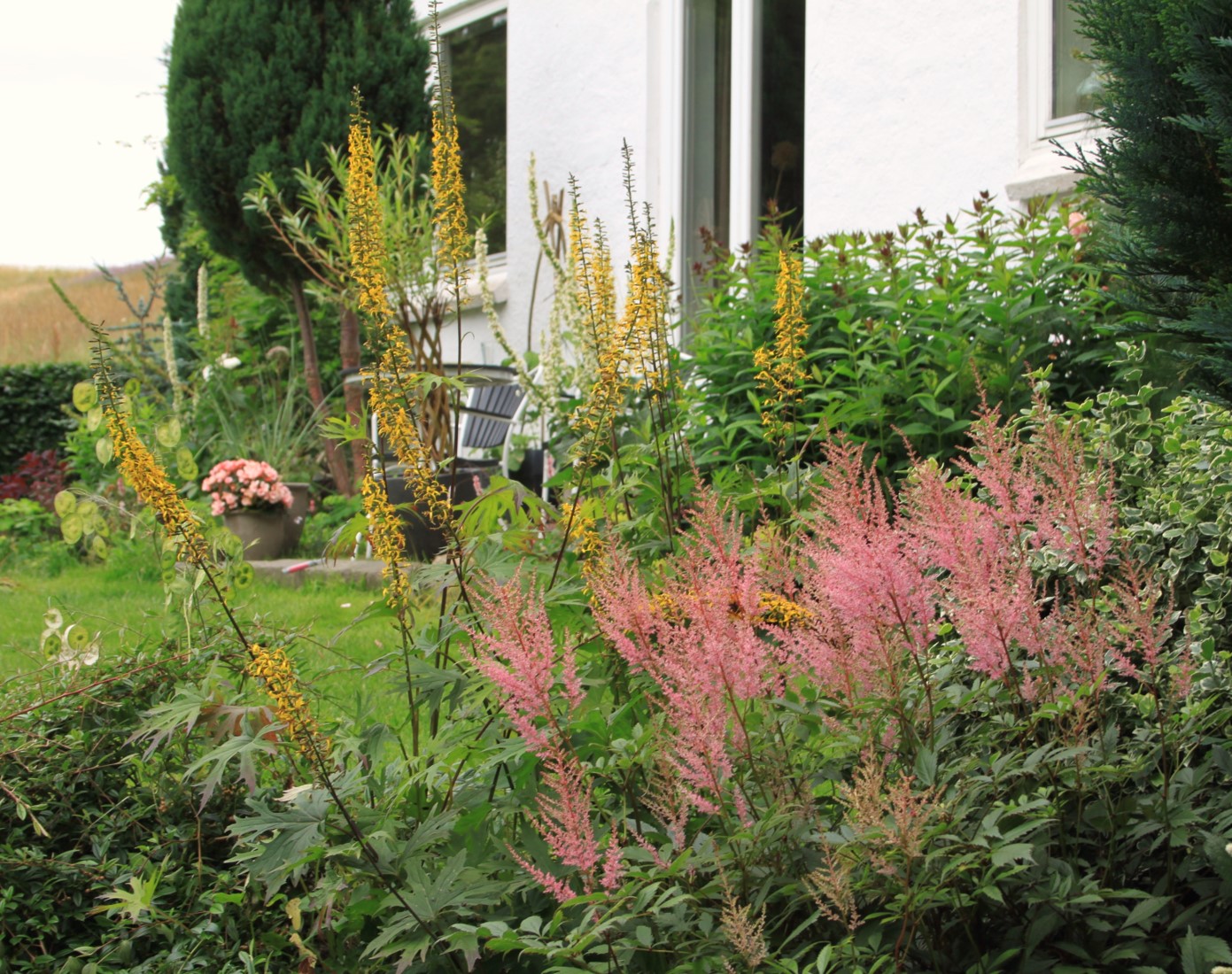 Jeg har arbejdet bevidst med at få lidt kulør ind i netop det tidsrum, og det er lykkedes ganske pænt. Så nedenfor er der et par ideer, hvis du står med en grøn have mellem blomstringerne i juni og august.