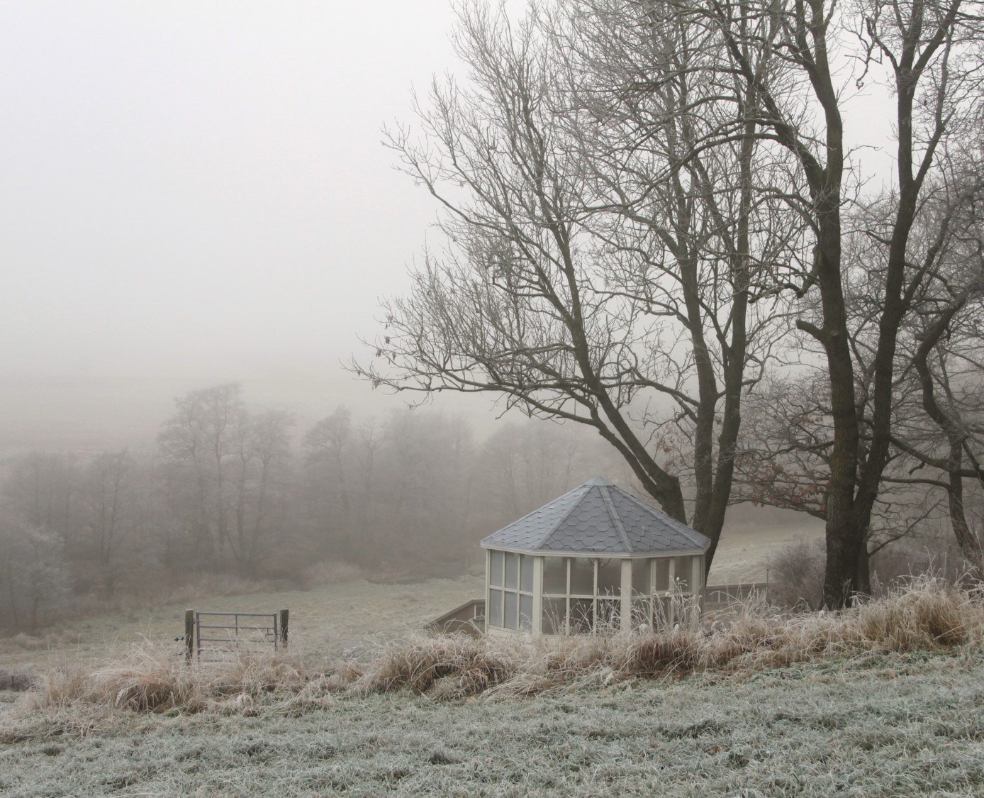 2. Det er nu smukt, sådan et vinterlandskab! Og hvor ligger jeres pavillon altså fantastisk lige der midt i det hele!