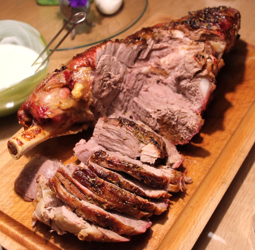 Og den bedste opskrift var lammekølle stegt på grillen. Lam har så godt af grill, og duften var som en sommeraften sydpå.