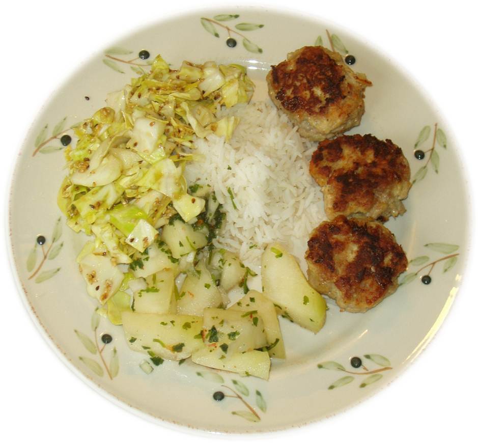 Asiatisk coleslaw, små forårsruller, marineret laks og to dipsaucer. Lav suppen også, og du har en lille thailandsk gæstemiddag.