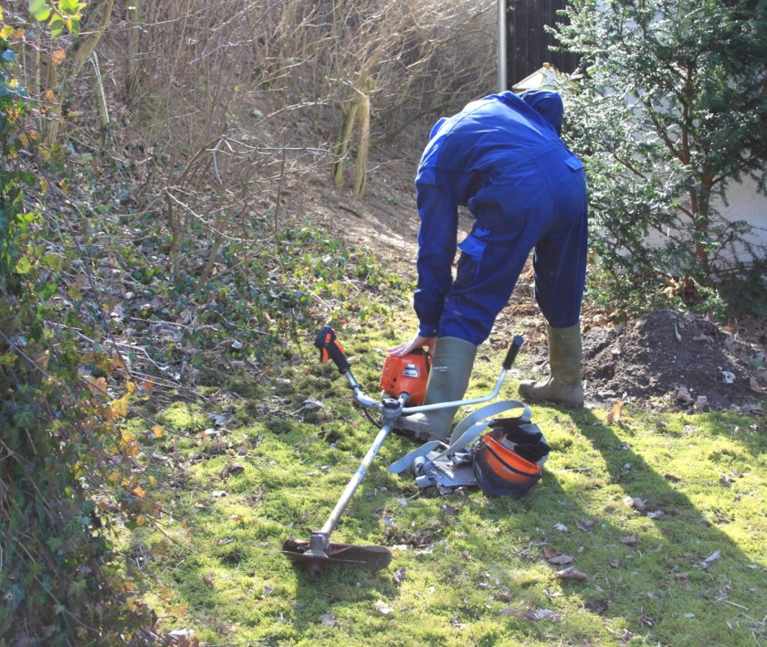 Det blev der gjort noget ved i weekenden. Bondemanden greb først buskrydderen og derefter motorsaven.