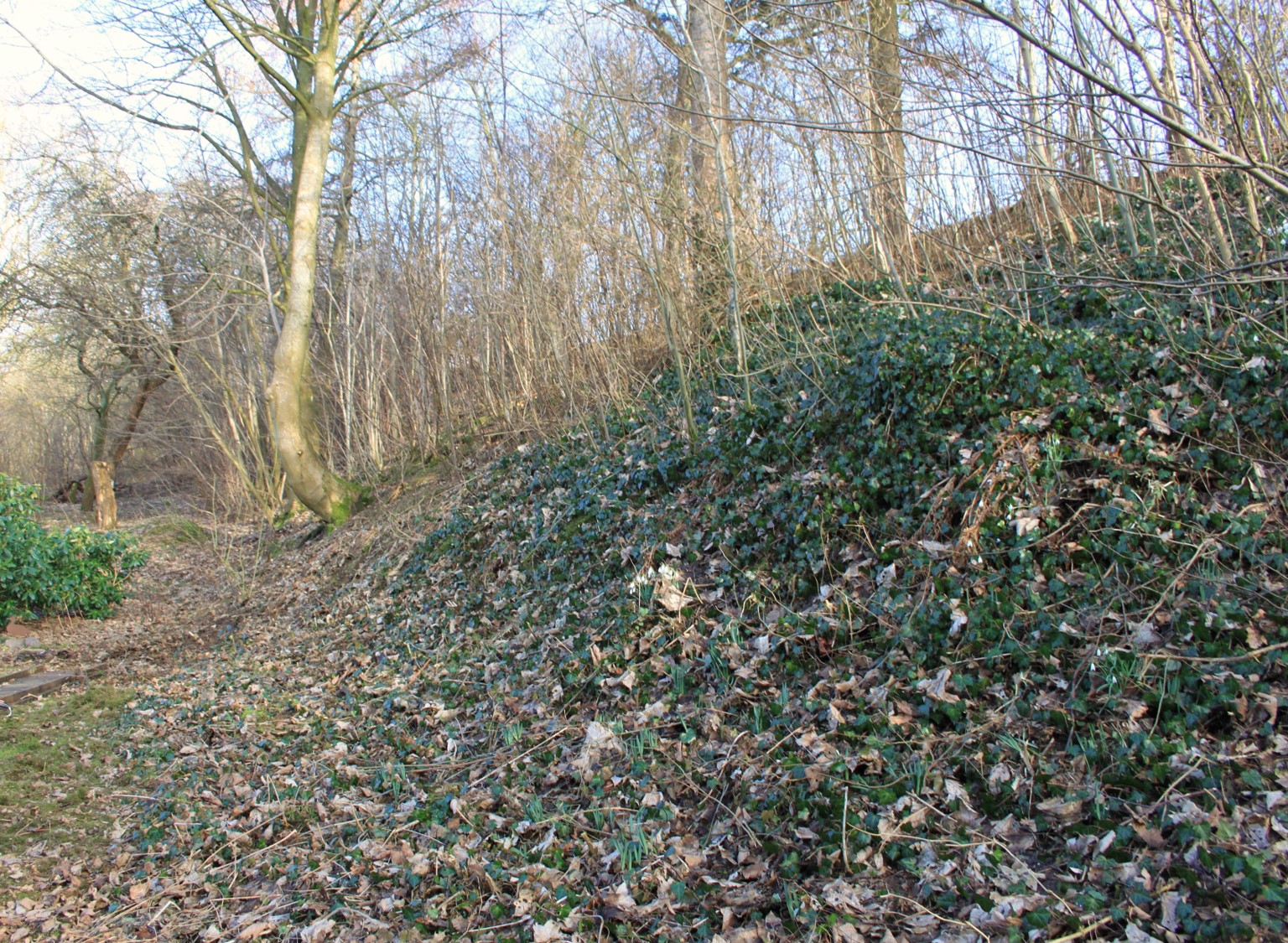 De nederste meter blev ryddet, så man kan se den smukke, vilde efeu, der dækker store dele af skrænten.