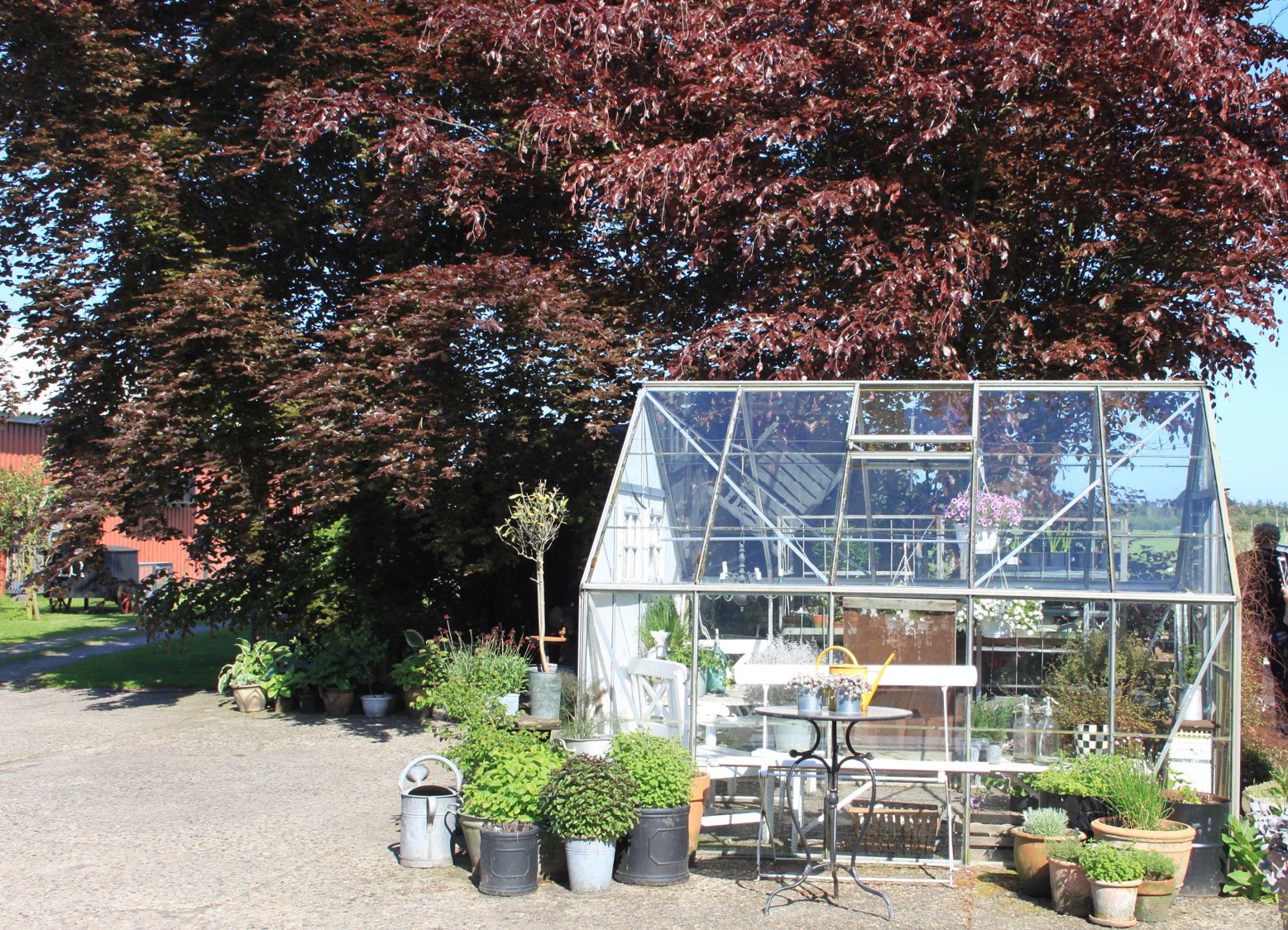 På den anden side af huset ligger pladsen med det hyggelige potteskur, hønsehuset og drivhusene – og de gode sidde og hvilepladser.