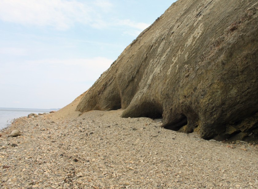 Man ser det endnu mere tydeligt ved Ejerslev. Som et maleri ligger de forskelligt farvede lag i det lyse moler.