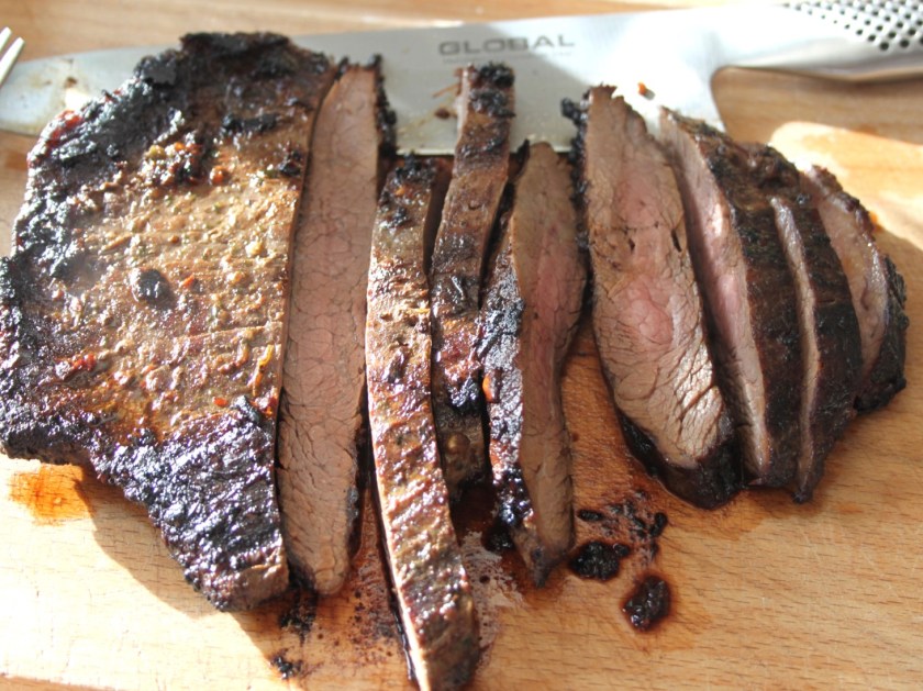 Mums så lækkert. Vi laver ofte flanksteak og synes det er et lækkert mørt stykke kød, med masser af smag. Den marinade dér skal da lige afprøves næste gang.