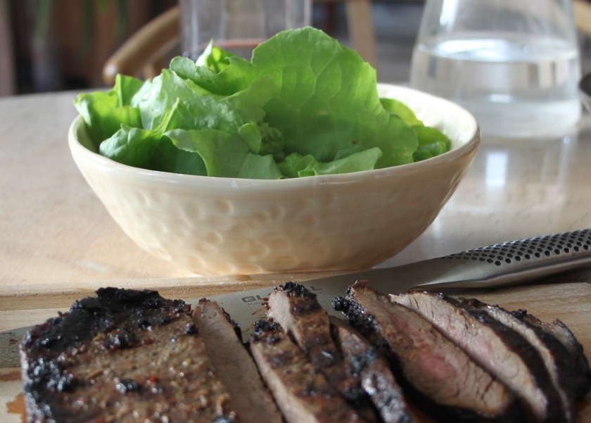 Flanksteak er et rigtig godt stykke kød. Det kan grilles, eller det kan steges på panden. Alt efter vejr og lyst. En rigtig god marinade til flanksteak er den her næsten klassiske med blandt andet soya, hvidløg, chiliflager og frisk koriander.