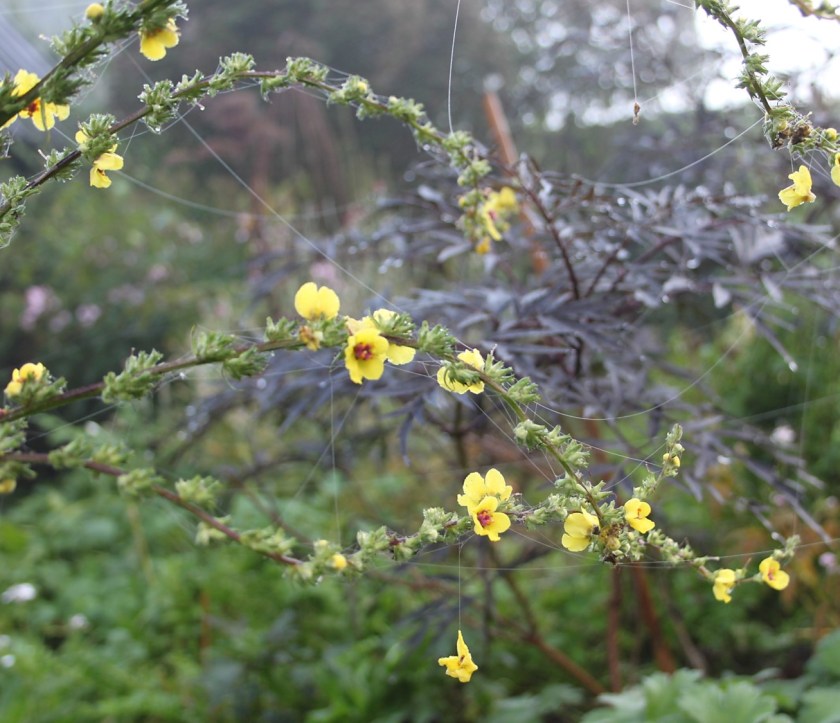 Det er blevet tid til den sene, mørkøjede kongelys. Den, jeg aldrig når at få frø af, fordi de enten bliver taget af frosten, før frøene er modne, eller de rådner i alt for meget regn. Den har heller aldrig bredt sig – sikkert af samme grund.