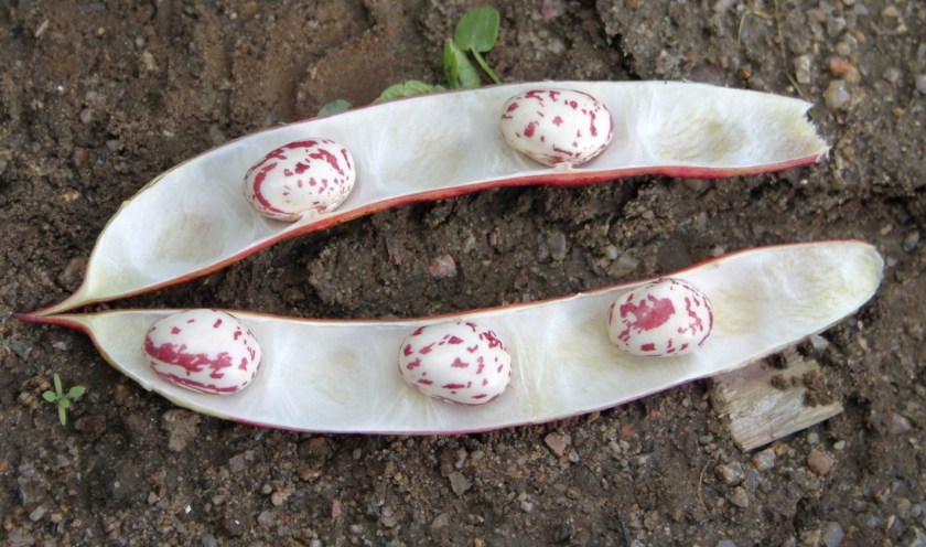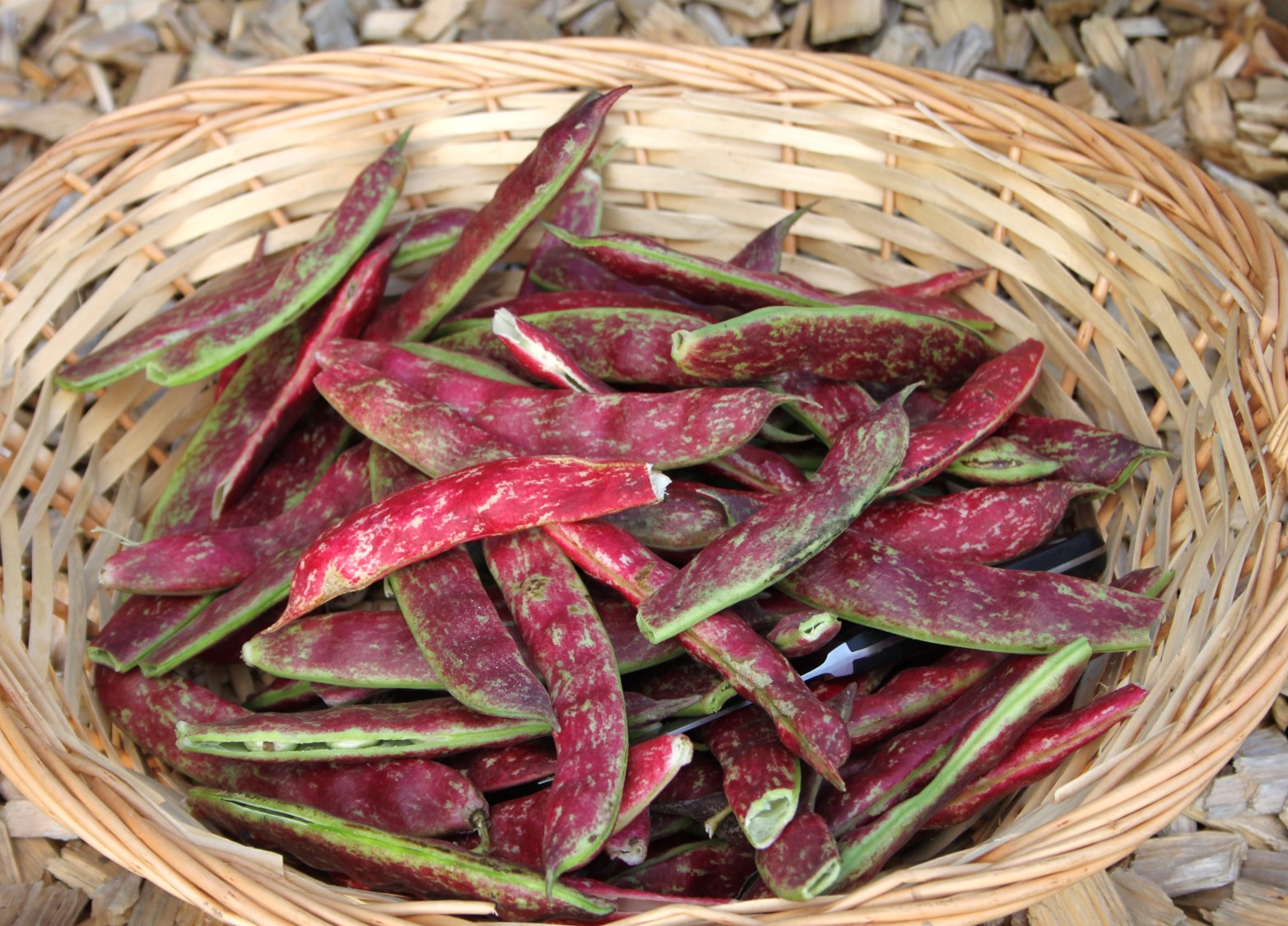 En af årets sidste sommerafgrøder i køkkenhaven. De smukke, rødbrogede bønner, borlotti bønnerne.