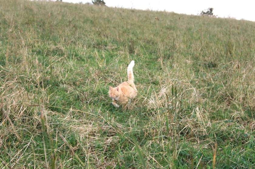 På vejen hjem mødte vi Puma. Han holder også meget til på marken, og han kommer altid for at hilse på, når vi sådan kommer ud i hans Catworld.