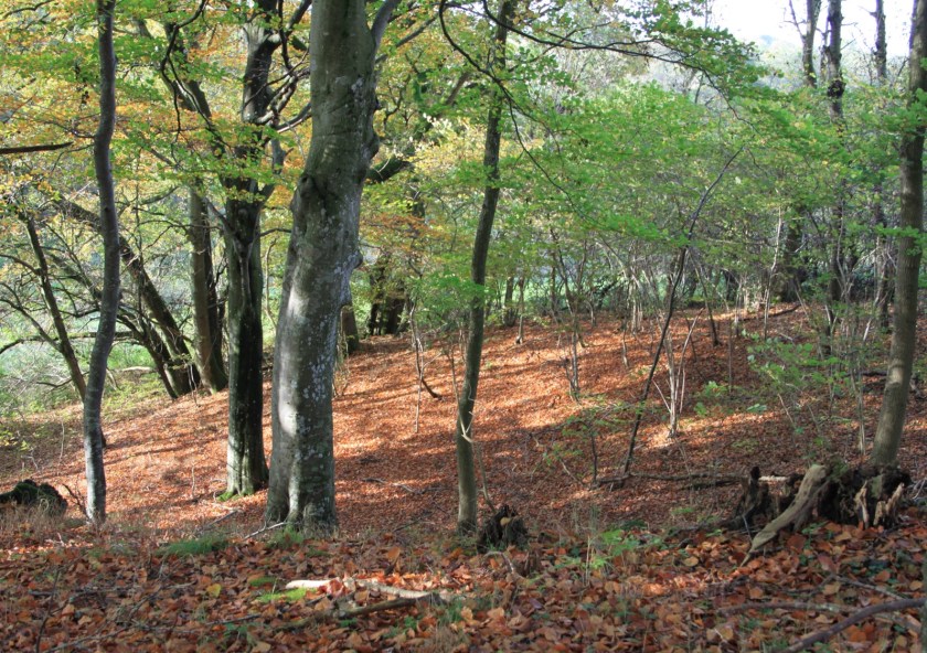På vores jord ligger der et stykke med bøgeskov. Det er ikke en stor skov, kun omkring en tønde land, der skråner stejlt ned mod engen.