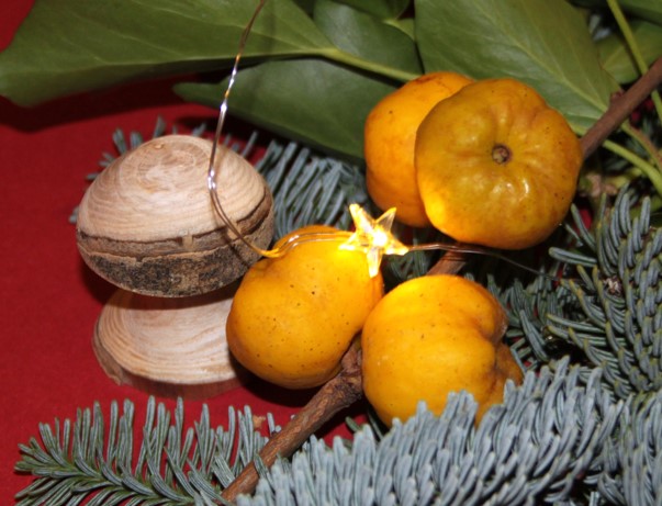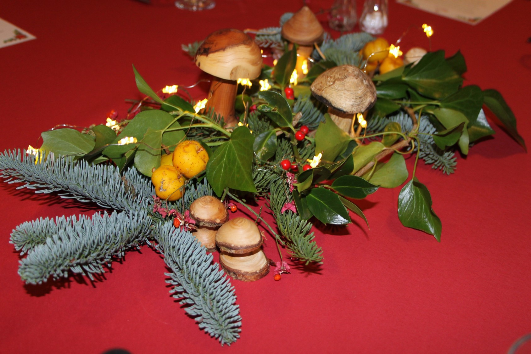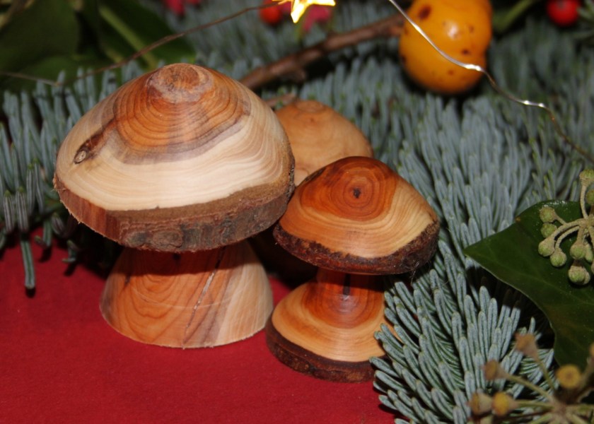 I går var jeg til julefrokost – ikke nogen helt ualmindelig foreteelse fra midt i november og til efter jul engang. Jeg var selv med til at arrangere den (heller ikke nogen helt ualmindelig foreteelse), og vi pyntede op med grønt fra haven, med de små stjernelyskæder og med de kønneste svampe af træ, lavet på drejebænk af en af de andre arrangørers dygtige mand.