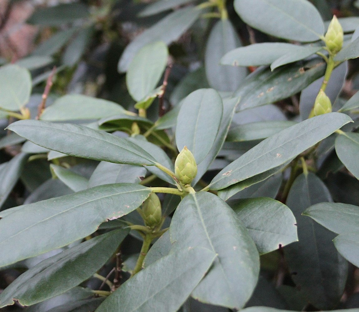 Der går lang tid, før vi rigtigt kan se det. Og der er lang, lang tid til foråret. Men tegnene er der. Rododendron står med knopper – gjort klar allerede lige efter sidste blomstring.