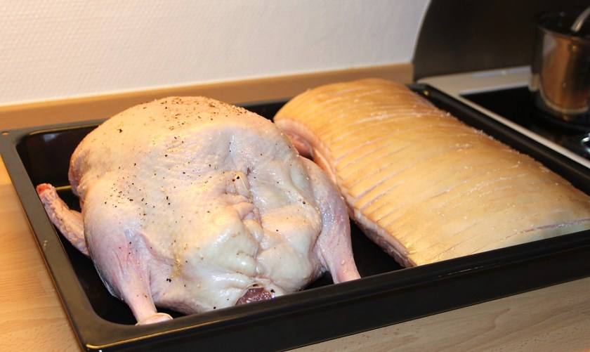 Anden er gjort klar, og det hele er sat i ovnen.