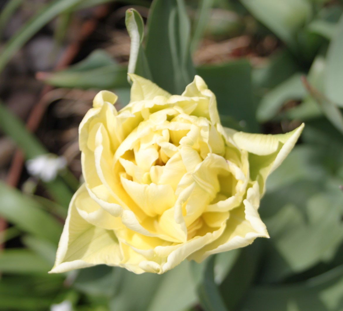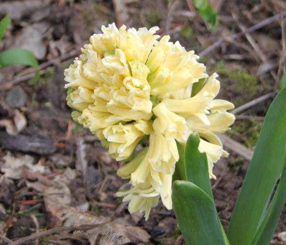 Den sarte lysegule farve lyser op i haven lige nu. Der er lysegule hyacinter.