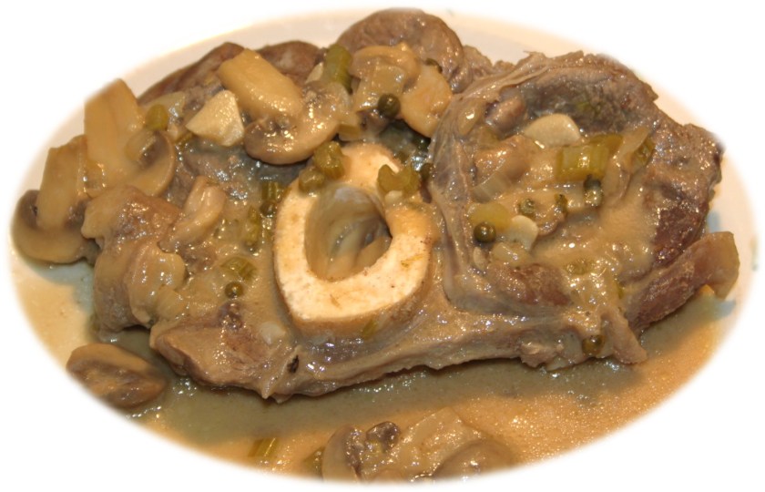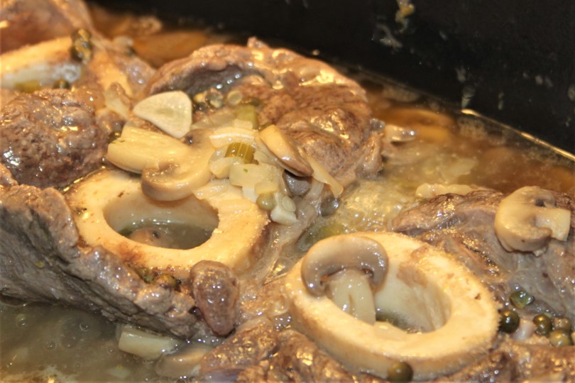 Okseskank – ‘osso buco’ med grønne peberkorn