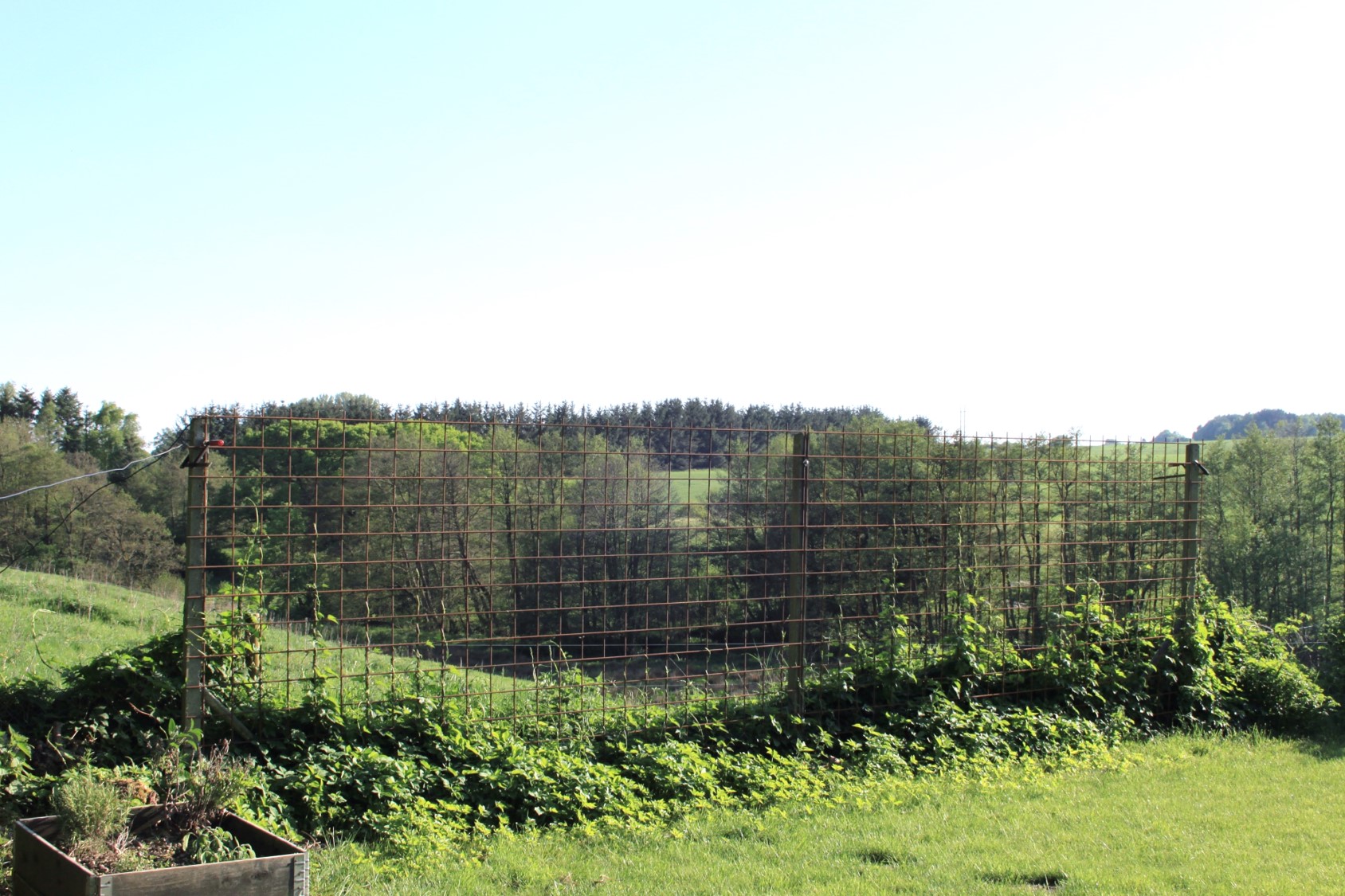 I år er det ekstra flot. Ikke kun på grund af de mange humlekopper, men også fordi det i foråret fik et hegn af rionet at vokse på. Det giver en fin jævn overkant til de vildtvoksende humleranker.