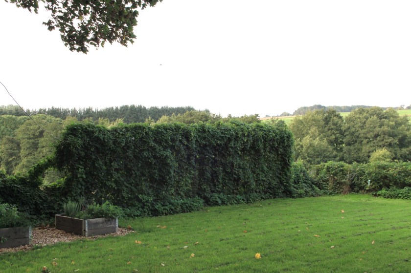 Hegnet skærmer haven og giver læ, når det bryder vinden. Det er så flot i al sin grønne overdådighed.