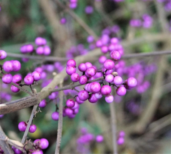 Og så er der glasbærbusken. Hvert bær ligner en lille, lilla perle.