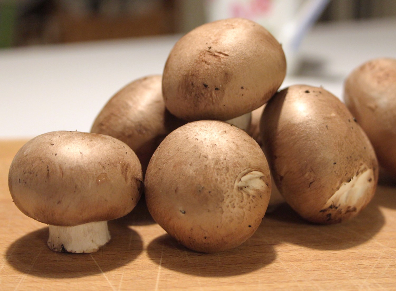 Det startede med, at jeg fik øje på en pakke kyllingeoverlår til en tyver og så nogle smukke, brune champignon i Rema i går. Det blev til kylling i fad med blandt andet svampe, bacon, paprika og løg.