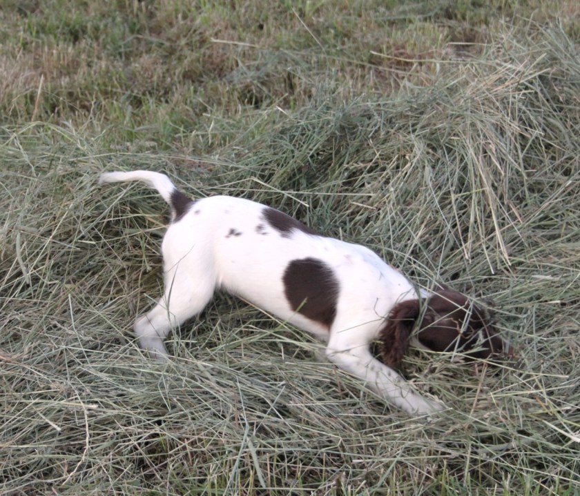 De lange bræmmer af græs syntes Maggie var noget af det mest spændende, hun har oplevet i sit 14 uger lange liv. Gode at bore sig ned i…