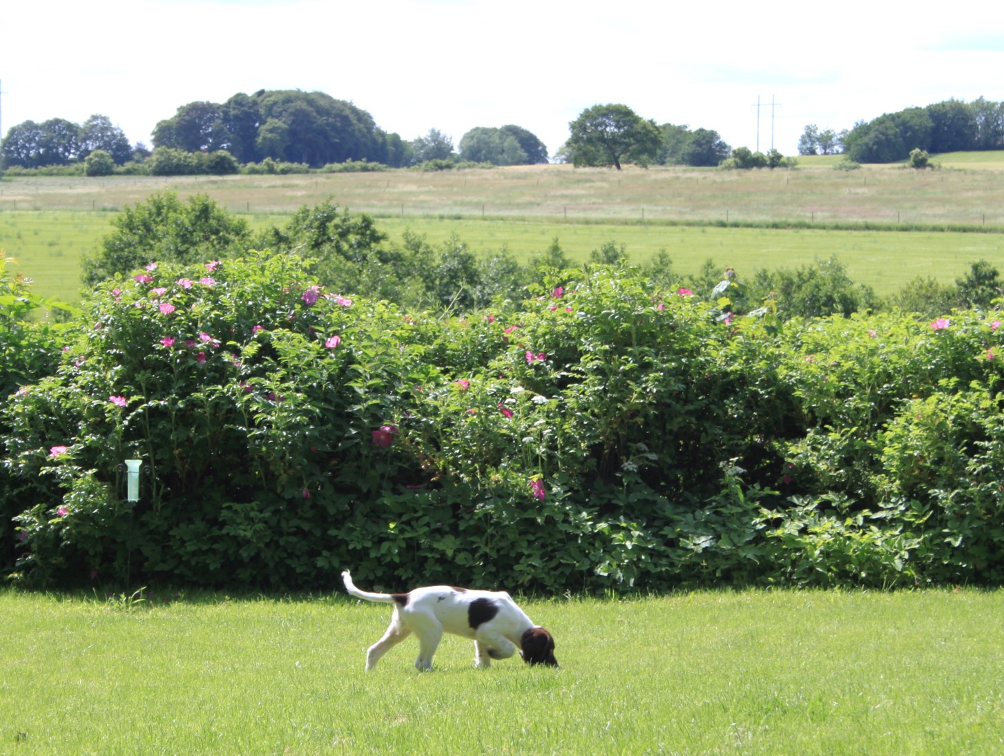 og roserne dufter og blomstrer og drysser og sætter nye knopper, der springer ud, dufter og drysser.