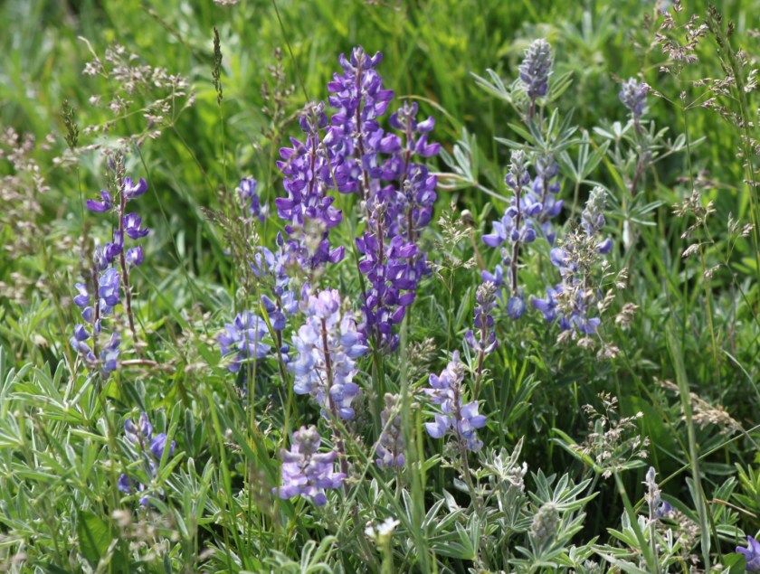 Langs vejene i Yellowstones bjerge mødte vi lupiner. Lidt mindre og lettere end dem, vi kender herfra.