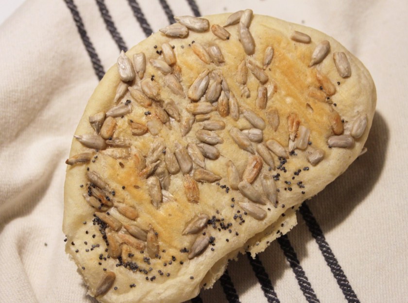 Når vi en sjælden gang køber morgenbrød, er der altid skagenslapper med i posen. De hvide halvmåneformede med et tykt lag solsikkekerner under bunden og birkes på toppen.