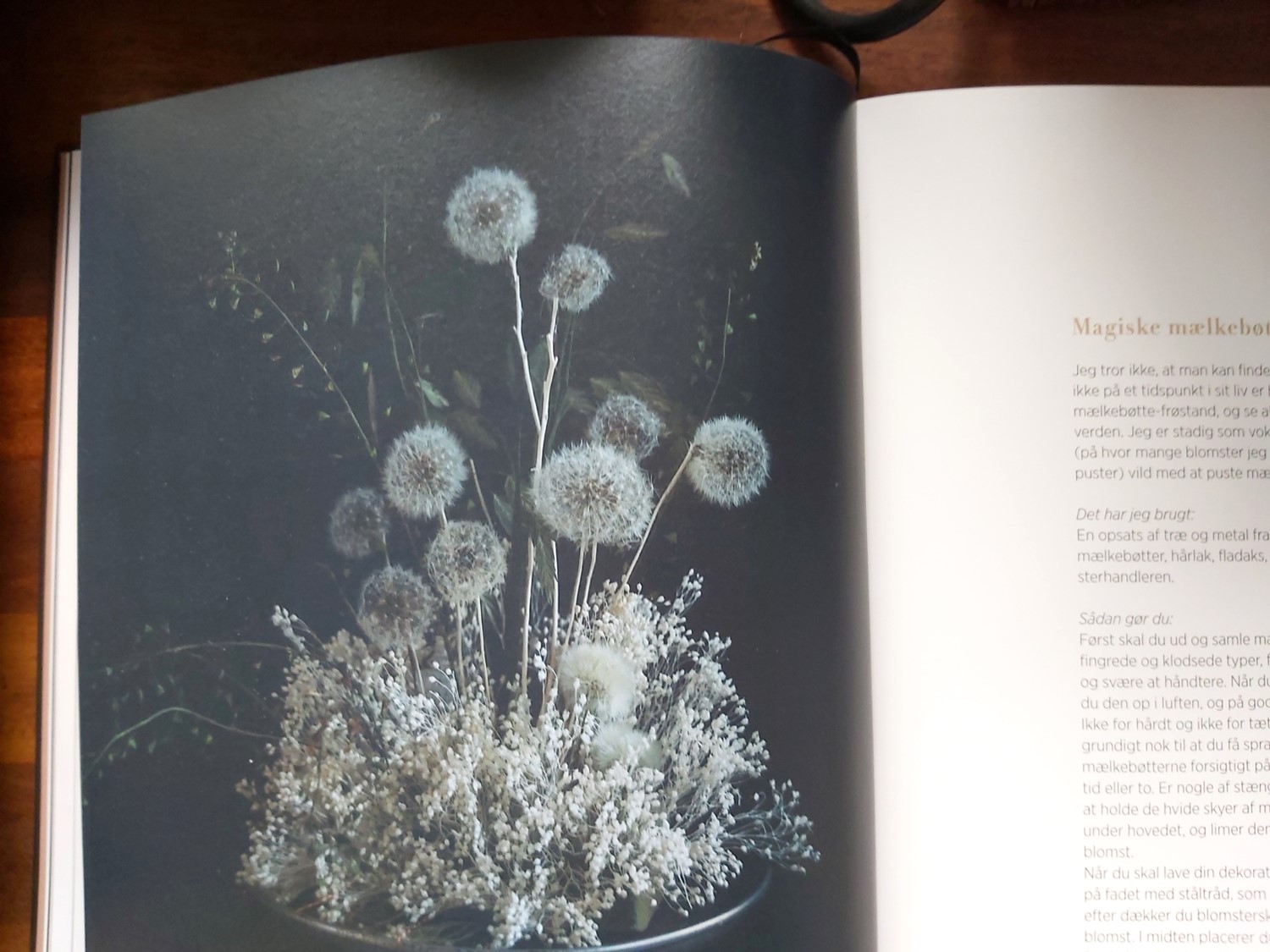 I bogen giver Dorthe Kvist en grundig vejledning i teknikkerne. Hvilke blomster, der er egnet til tørring, hvad man må samle, hvordan man tørrer blomster og behandler dem, så de kan holde – også mælkebøtternes fnuglette frøkugler. Det skal jeg altså prøve, når det igen bliver mælkebøttetid.