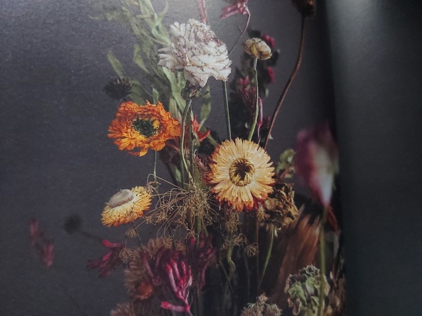 Mange af billederne i bogen minder mig om baroktidens overdådige blomstermalerier, hvor man – når man ser godt efter – opdager, at nogle af blomsterne er ved at visne, drysse, falme. Den uomgængelige forgængelighed. Memento mori – husk du skal dø – et oplagt emne i 1600 tallet, hvor døden var så nærværende. Pest, brand, krige – og almindeligt hårdt liv. Få mig ikke startet på det emne og den tid. Så når vi vist aldrig tilbage til bogen igen, og det skal vi.