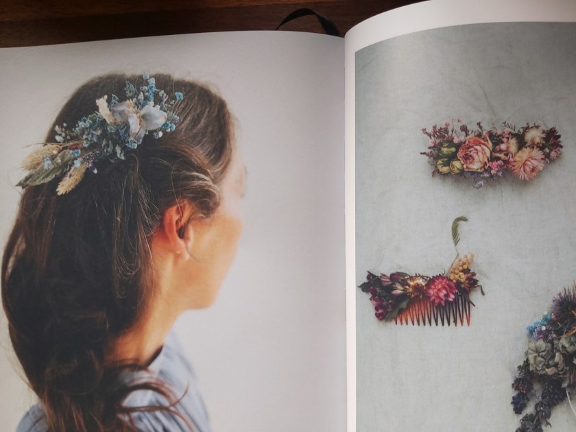 Derefter kommer projekterne. Projekter med grundig vejledning, mærket efter sværhedsgrad. Med opfordring til selv at prøve sig frem, lade sig inspirere og bruge de blomster og frøstande, man har og har adgang til. Det behøver nemlig ikke at være dyrt at pynte med tørrede blomster. Tværtimod gælder det om at holde øjnene åbne, ‘for naturen er fuld af ting, der ligger lige for fødderne af os og ikke koster en rød reje’, som Dorthe Kvist selv siger det.