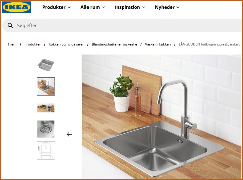 Nu får vi nyt køkkenbord – i laminat, der ligner asketræ. Jeg vil ikke have rigtigt træ, for jeg orker ikke vedligeholdelsen, og jeg frygter konsekvenserne af rødbedesyltning og ægte, lyst asketræ, jeg har glemt at give olie – og vi får en ny vask, der er stor nok til, at man kan vaske bageplader i den.