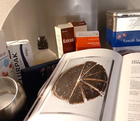 Jeg har prøvet et par af opskrifterne her i weekenden (og i et køkken uden vand følte jeg mig helt som en præriehusmor… bare en lidt heldig en med vand i næste rum og med et stort køleskab). Først tærten med saltkaramel, som fik mine tænder til at løbe i vand, allerede da jeg så billederne.