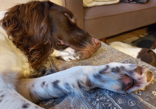 Der er sket en masse med begge hunde. Rosie er selvfølgelig ikke vokset, men hun er faldet rigtigt til og er blevet meget mere fri og bedre til at vise, hvad hun gerne vil, i stedet for kun at gøre, som hun bliver bedt om. Hun kan endda finde på at kravle op og putte i arm i sofaen – det var utænkeligt for den professionelle nanny og jagthund for bare et halvt år siden. Maggie har lært meget af Rosie. Især af hendes ro. Men Rosie har lært af Maggie, at man gerne må være lidt pjattet.