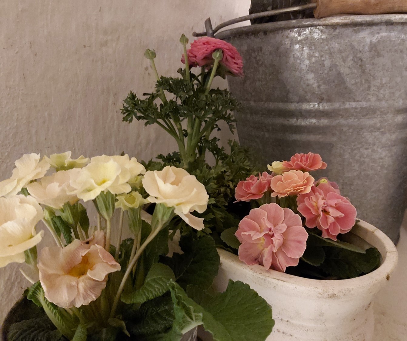 Den runde, hvor jeg lige tjekker, at alt er, som det skal være. Jeg sætter blomsterne ud i den kolde baggang, så de bedre kan holde sig.