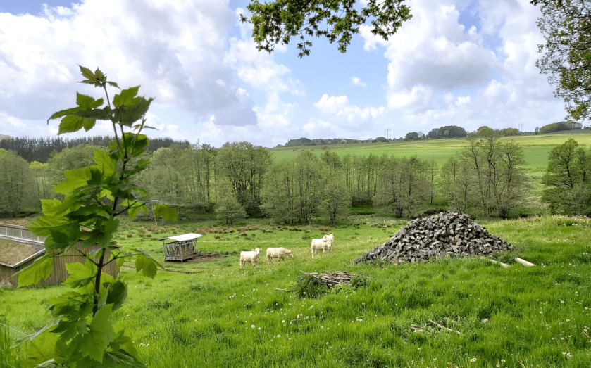 I går ved middagstid rumlede en lastbil ned ad bakken, vendte og bakkede til ved leddet ind til engen. Så var køerne ankommet. Fire styks Charolais kvæg – de smukke hvide – ligesom dem vi har haft i de seneste år.